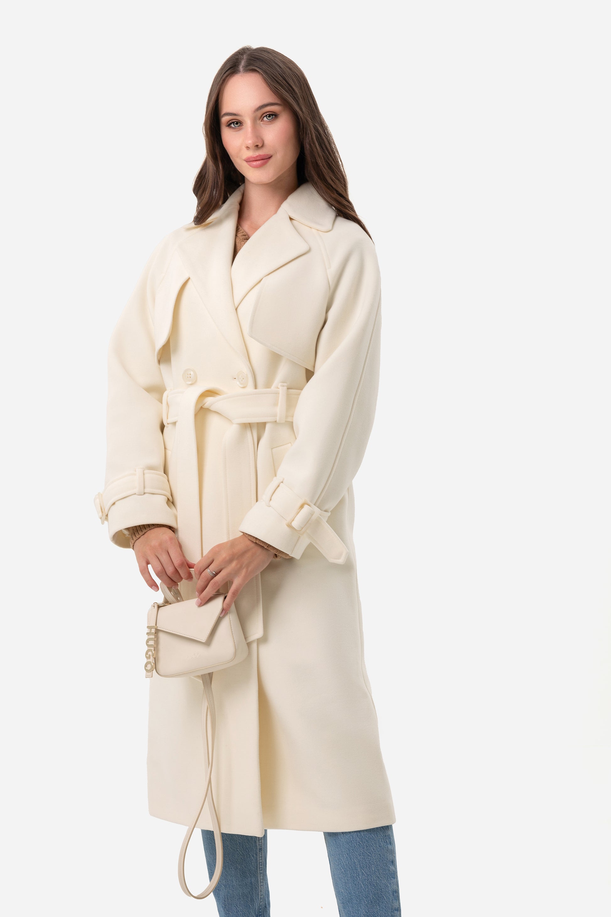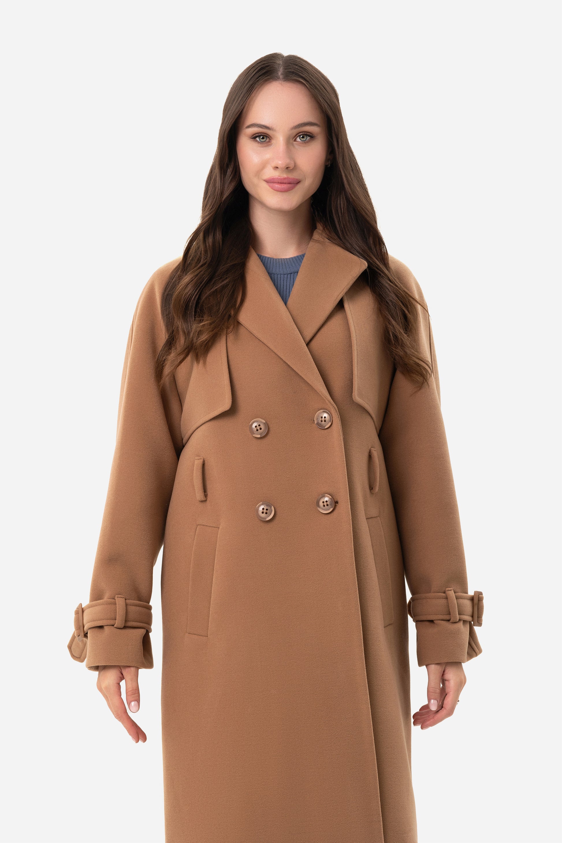 An elegant coat is a must-have for the cold season. A long coat with a straight silhouette, a regular fit. The front and back yokes attract attention. A classic collar. A raglan sleeve with a smooth shoulder line. The bottom of the sleeves is decorated with patas. The product fastens with buttons and snaps. There are side pockets. A belt will accentuate the waist.