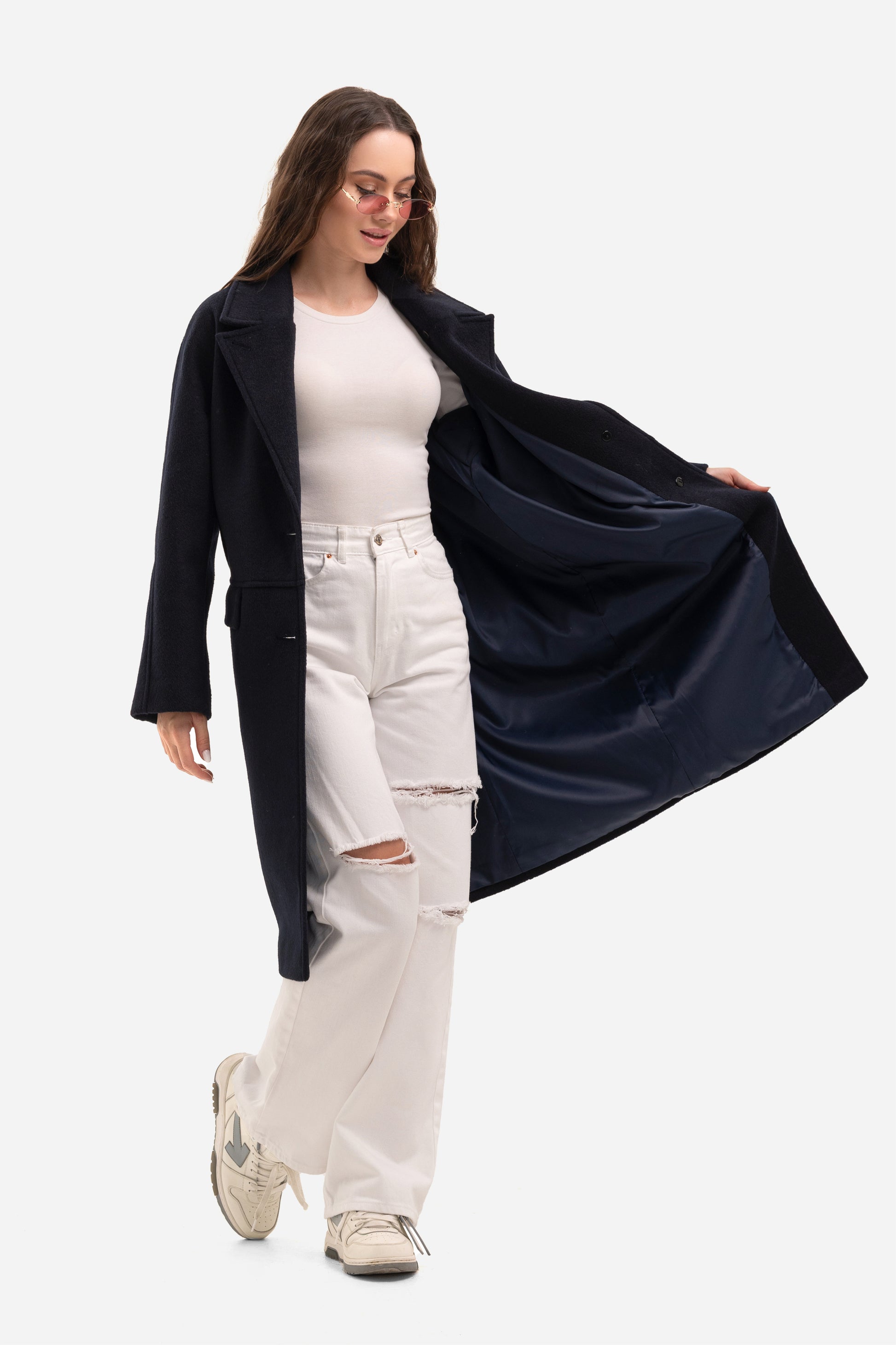 A stylish coat crafted from textured fabric — a warm must-have for autumn and spring. Designed in a loose fit with wide, seamless sleeves, it looks equally chic with slim tops or chunky sweaters. An accent seam at the waist adds definition, while flap pockets bring both practicality and charm. With its mid-length cut, this coat blends effortlessly into your everyday wardrobe.