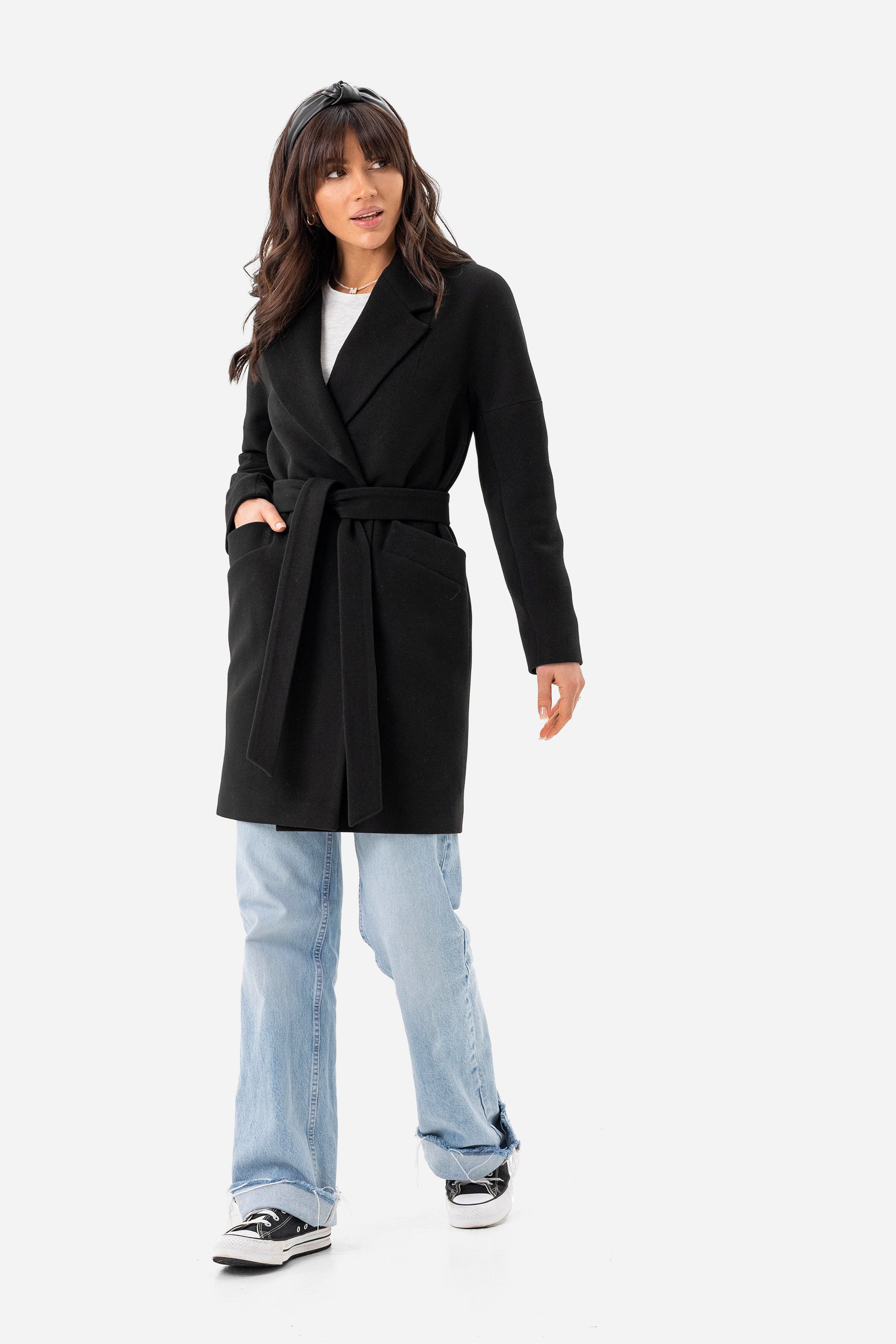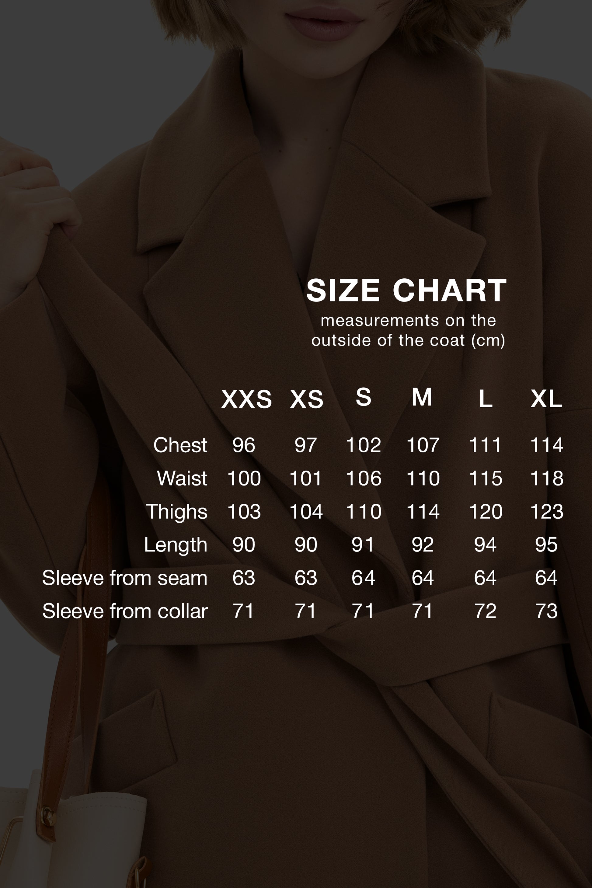 A stylish women's coat is something that will never go out of fashion. The coat is universal in length, so it will suit any height. Due to the oversized style, the coat sits freely on the body. This model will look harmonious on every type of figure. Coat with a turn-down collar. Soft shoulder line, raglan sleeve. There are side pockets. The model can be worn with the belt that comes with it.
