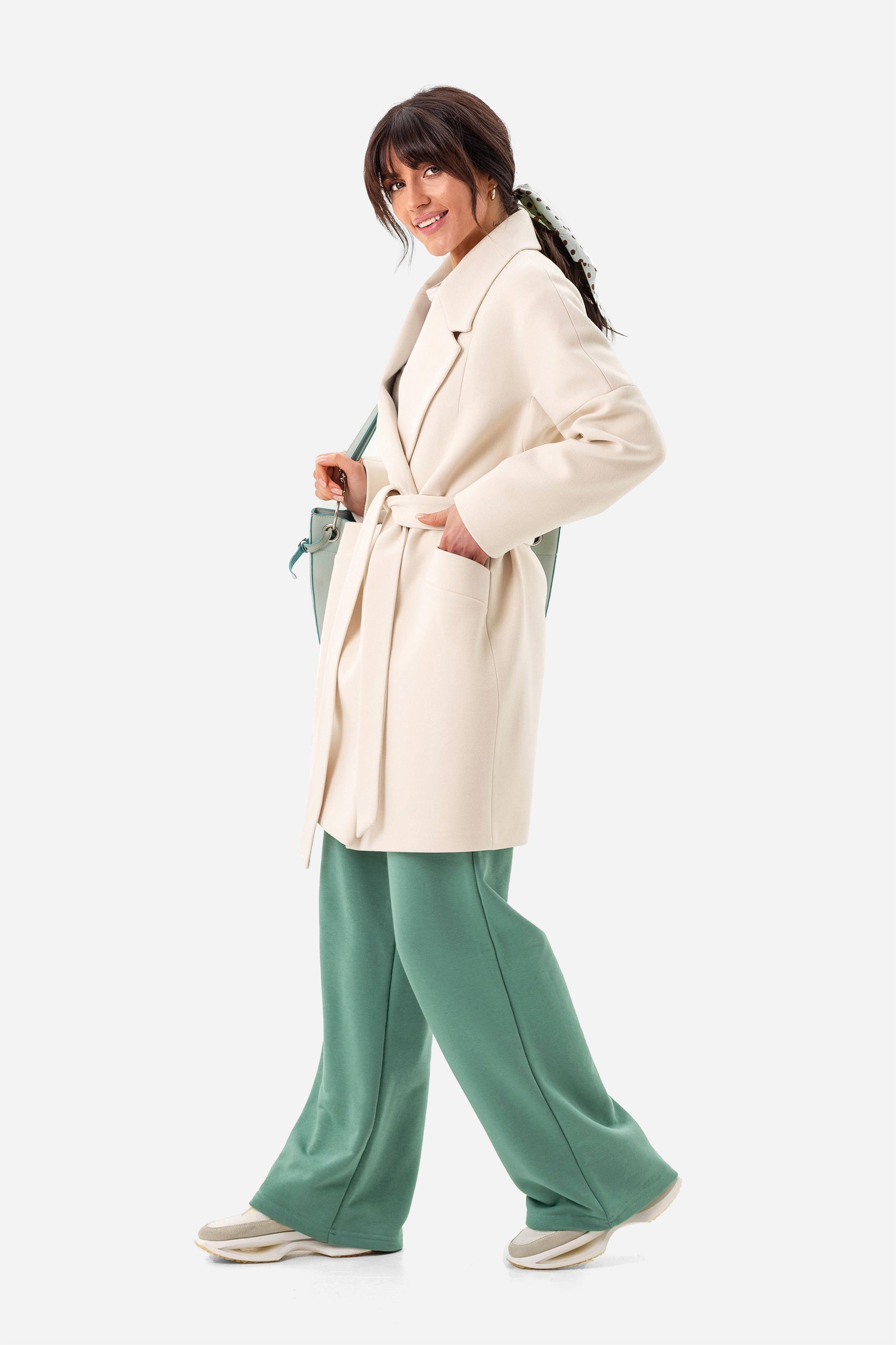 A stylish women's coat is something that will never go out of fashion. The coat is universal in length, so it will suit any height. Due to the oversized style, the coat sits freely on the body. This model will look harmonious on every type of figure. Coat with a turn-down collar. Soft shoulder line, raglan sleeve. There are side pockets. The model can be worn with the belt that comes with it.