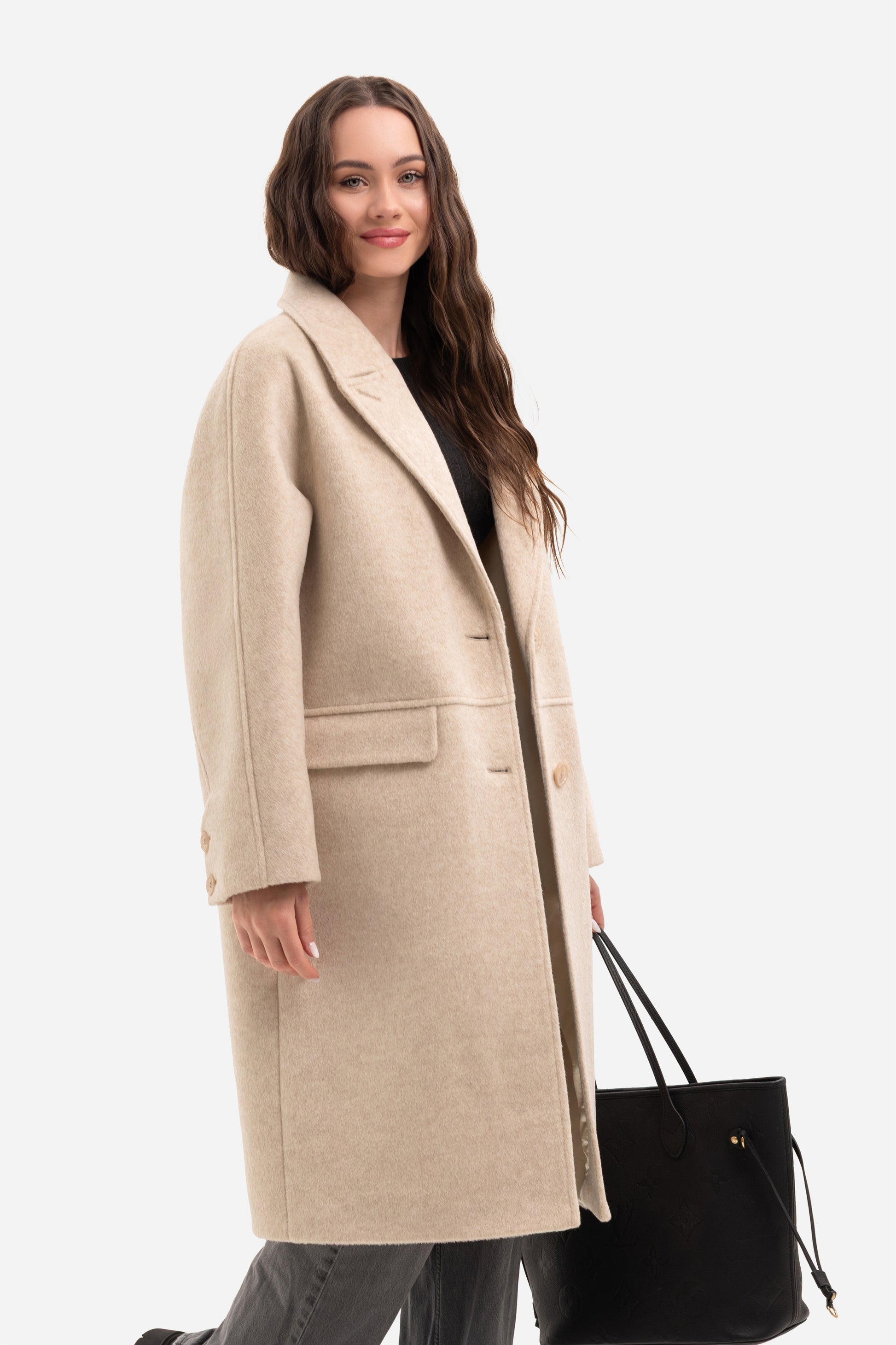 A stylish coat crafted from textured fabric — a warm must-have for autumn and spring. Designed in a loose fit with wide, seamless sleeves, it looks equally chic with slim tops or chunky sweaters. An accent seam at the waist adds definition, while flap pockets bring both practicality and charm. With its mid-length cut, this coat blends effortlessly into your everyday wardrobe.